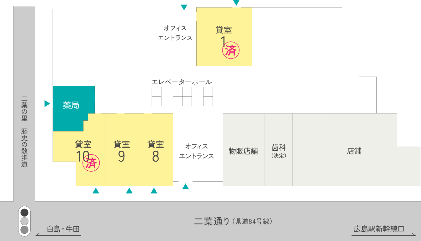 (貸室1)213.38㎡(64.54坪) 「脳神経外科」に決定しました。 (貸室8)158.08㎡(47.81坪) (貸室9)160.42㎡(48.52坪) (貸室10)191.99㎡(58.07坪) 「循環器内科」に決定しました。 |